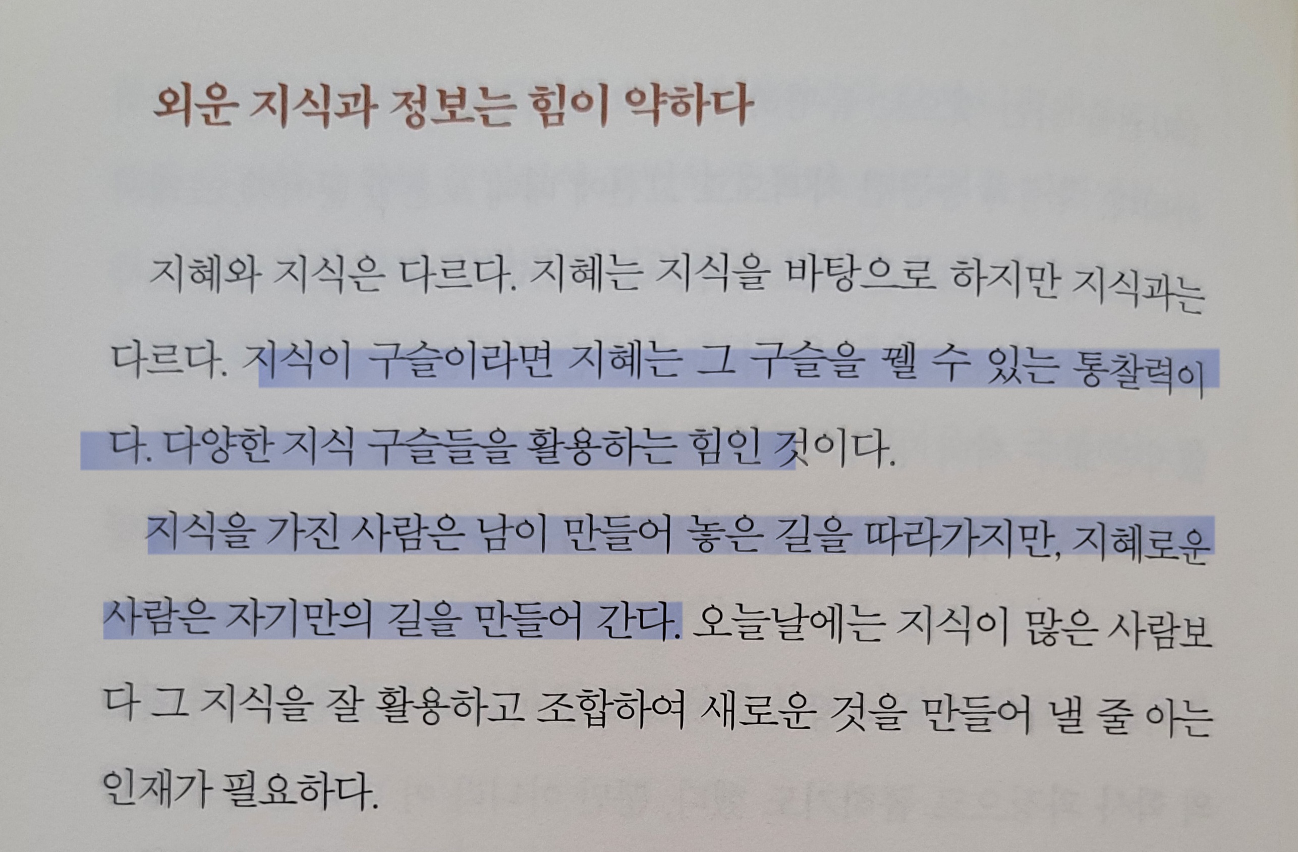 지식이 구슬이라면 지혜는 그 구슬을 꿸 수 있는 통찰력이